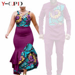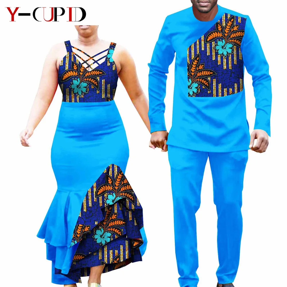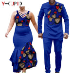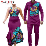African Clothes for Couple Print Long Dresses for Women Dashiki Men Outfits Shirts and Pants 2 Piece Sets for Wedding A21C005 - Free Delivery Worldwide only at Flexi Africa