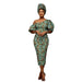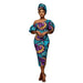 African Heritage Dress – Slim Fit Dashiki Gown with Puff Sleeves and Headwrap